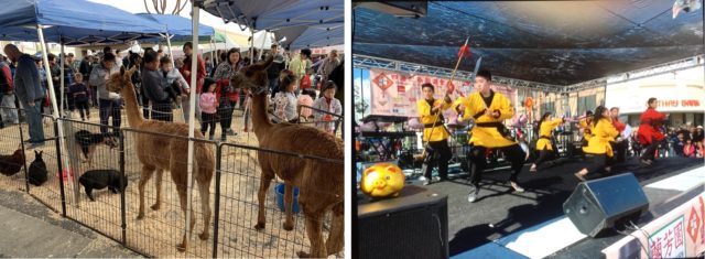 当我上午11:00前赶到山谷大道现场,周围的大街小巷停满了车辆,好不容易找到一个空位,匆匆步入园区,首先收入眼簾的是小动物园,六,七岁大的孩童在骑矮种马,显得十分得意。旁边更热闹。园内有羊妈妈护着羊宝宝。小花猪和小黑猪,摇着尾巴穿来逛去,一刻不停。小卷毛乌鸡,跳来跃去寻找食物。可爱的小兔子奔的奔,蹲的蹲。旁边有两只羊驼,怕脚踢游客,特地把它们围住,有点受限。这可是两三岁小孩们的乐园,只见家长们手牵孩子购买食料碗,入内让孩子们零距离喂食摸身,欢乐无比。