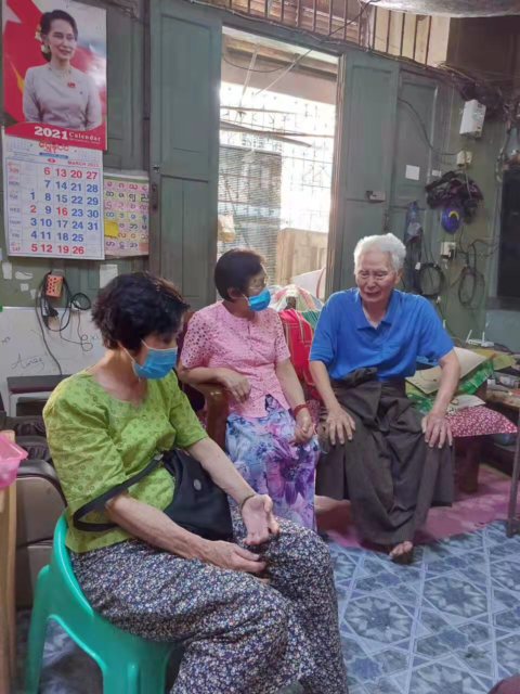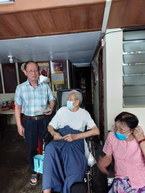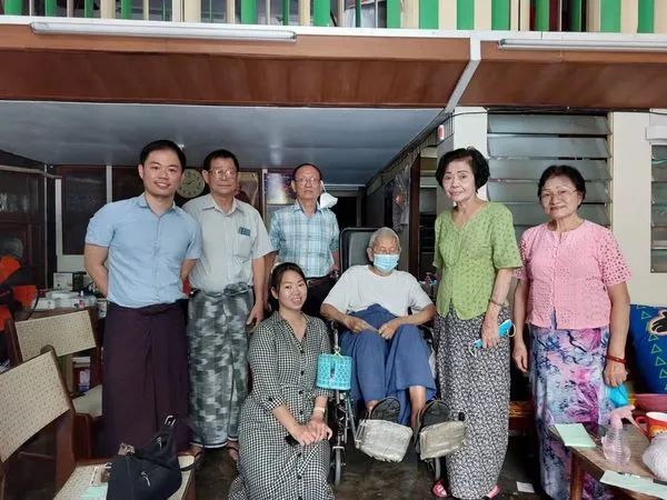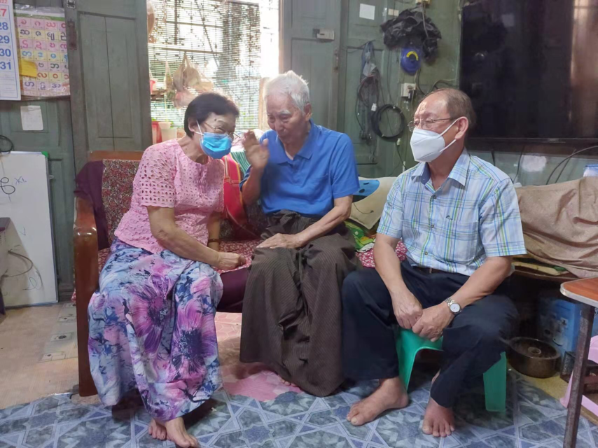 12日中午,派发物资活动结束后,华中校友会副主席黄焰光,副主席兼总务许百新,副主席兼秘书林向荣,副主席兼财政张玲玲,副主席兼秘书、财政陈玉芳,以及华友青年社主席杨胜富、财政谢娇娇、文艺伍丽彬等还亲自拜访了两位缅甸英国殖民时期(也就是新中国成立前)就读于华中的年过九旬的老校友;一位是篮球健将王鼎嘉,他宝刀未老,年已古稀还驰骋在篮球场上,第二位是自学成才的原华中缅文部主任卢文洲老师,他虽无文凭却教导出学生出类拔萃。