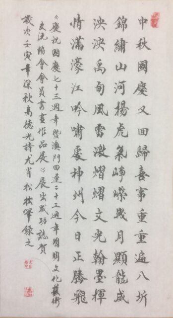《慶祝國慶73周年暨澳門回歸祖國23周年明明文化藝術交流協會會員書畫作品展》展出成功之賀