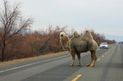 骆驼的生活习性和行为倾向可能会影响公路和乡村道路上撞车事故的发生。为了寻找水和食物,或处于交配季节,通常是4至6匹骆驼成群结队地穿越道路。此外,为了方便运输,骆驼饲养者通常会在高速公路附近安置骆驼,这也进一步增加了这些动物误入高速公路的可能性。此外,骆驼多为人工养殖。因长期与人类进行接触,所以它们不惧怕人,甚至不会轻易给高速行驶的车辆让路。