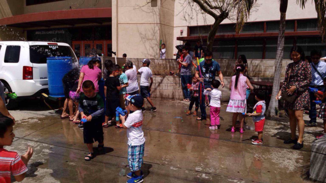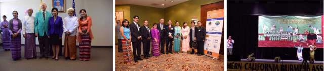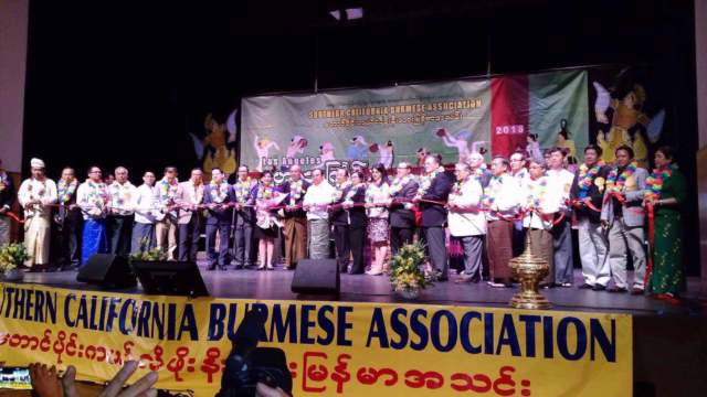 洛杉矶缅甸会于4-15-2018日,上午9时至下午4时,假借阿罕布拉市高中漂亮的剧院,宽扩的校园,隆重集会,欢度泼水节。内容包括剧院开幕剪彩典礼,精彩文娱汇演。摊位摆卖各种各样缅甸风味美食,摆放巨大水桶,给孩子们互相泼水嘻乐,象征去旧迎新。前来欢度佳节的会友贵宾,络绎不绝,场面壮观。