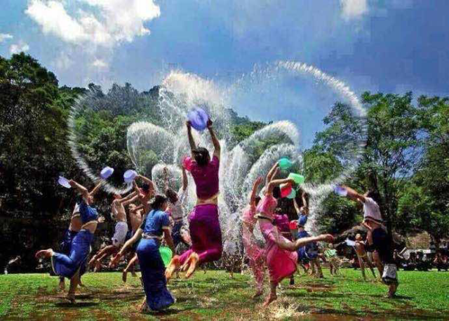 图一 飞腾的缅甸泼水节