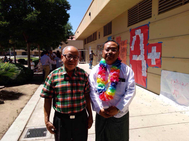 见到总领事宇昂梭温,笔者触景生情,回想起去年此时此刻,站在台上剪彩的前任缅甸总领事宇昂皎山先生。想起首任缅甸驻洛杉矶总领事宇昂皎山的到任前后。