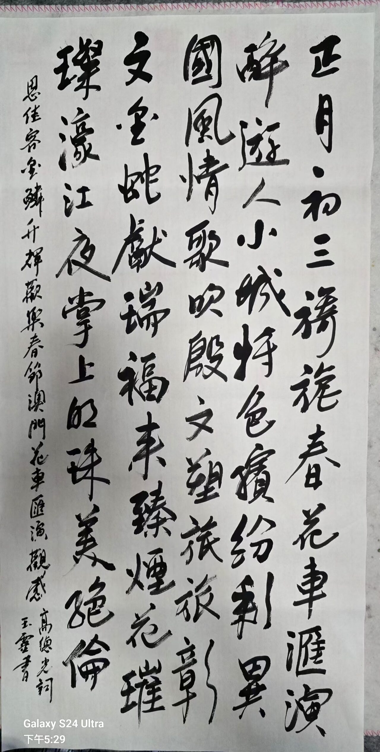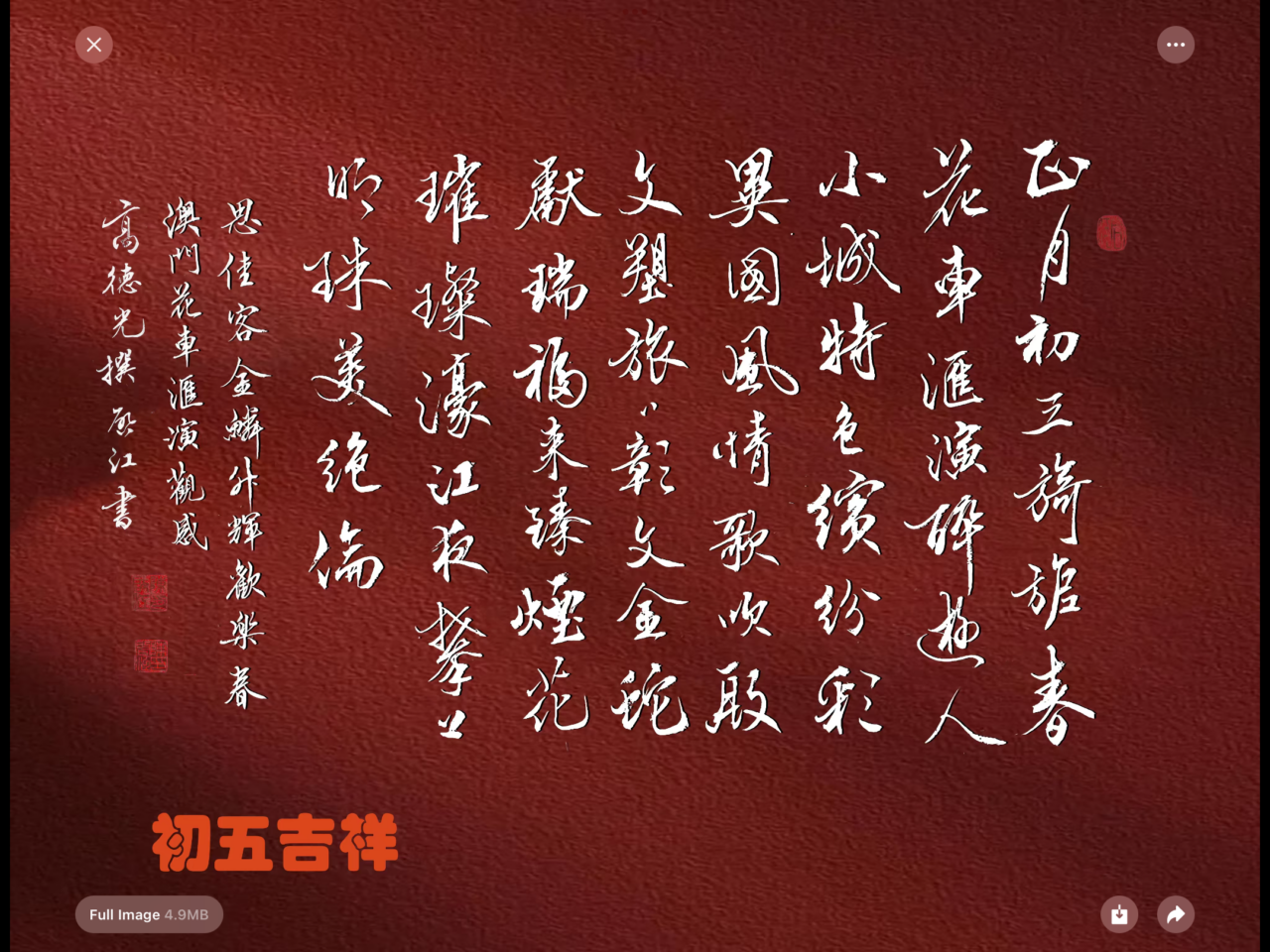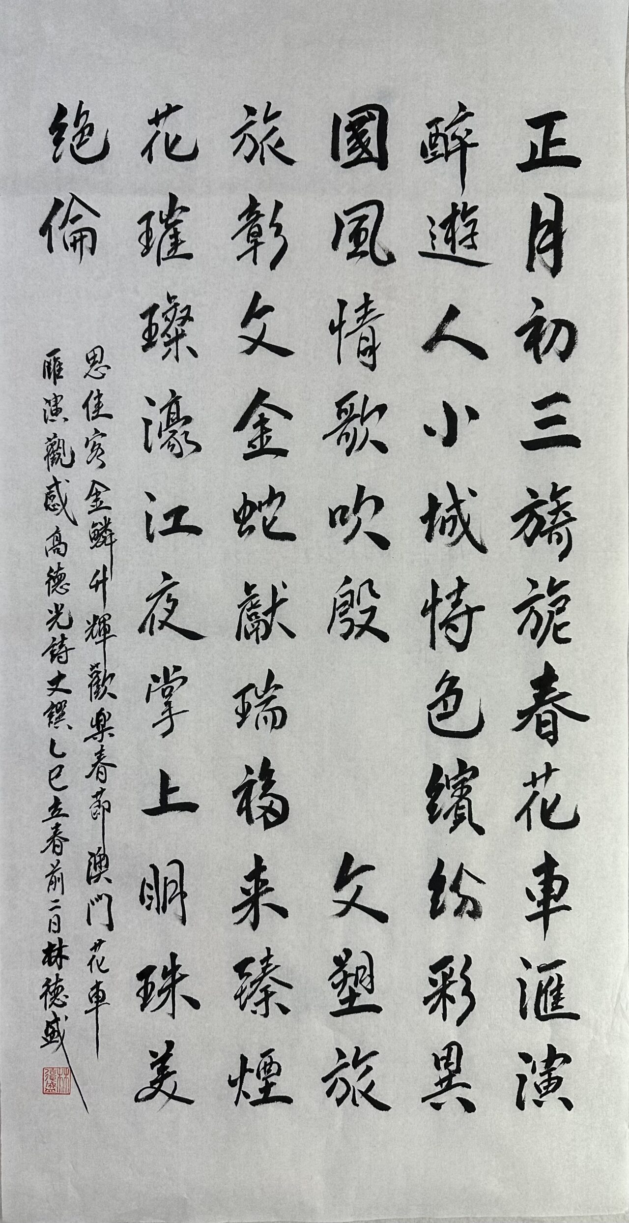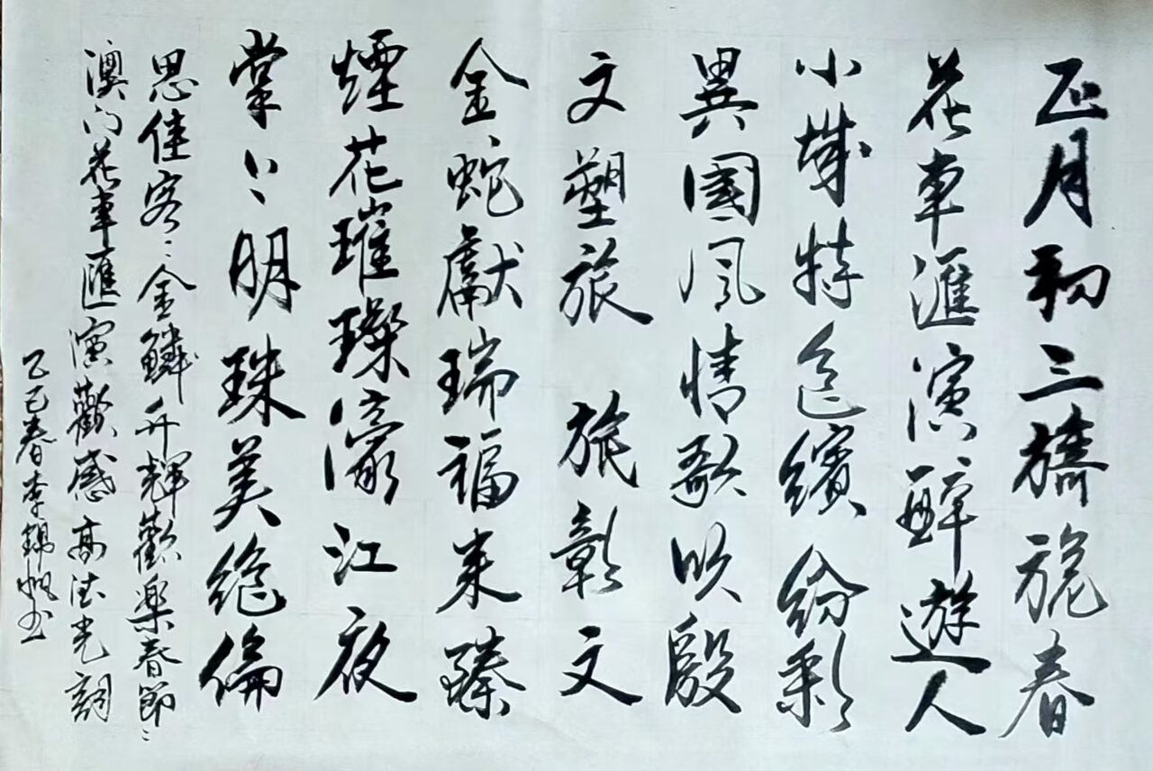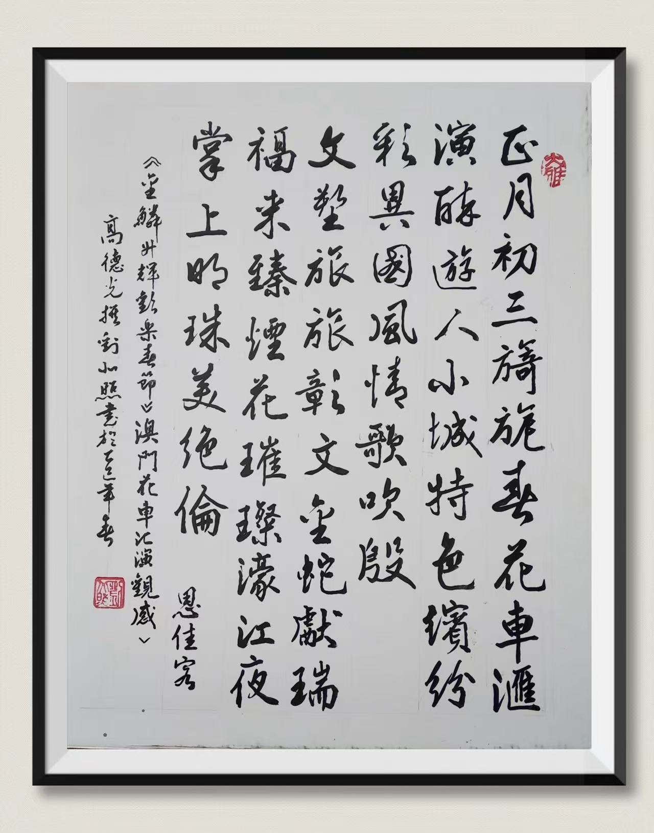 . . 華夏文明今古傳, 楚辭漢賦宋唐篇。 濠江薈萃吟風雅, 葡韻悠揚入管絃。 融滙中西相碰撞, 切磋音律共承宣。 好將世界詩歌節, 砥礪騷壇笑比肩。 书法 一〉馮利發 二〉劉北照 三〉茂松 四〉黎勝培 五〉周永騰 六〉吳錦蓮...