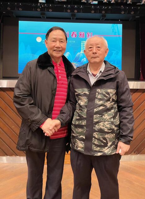 緬華筆會常務副理事長高德光(右)和澳門濠江中學校長尤端陽