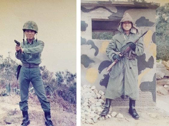 軍訓期間我曾經发生过一段难忘的小故事,在一個炎热的中午,部隊到山上出操,作单兵攻防訓練。手裡握着美式M1步槍,装上剌刀,跟着班長一個命令,一個动作,高喊:剌!剌!剌!阿兵哥們個個汗流夾背,軍服都湿透透,可是大家都忍受痛苦,不敢出声。只有我大吼一声,还把槍甩在地上,须知槍是軍人的第二生命,我已犯了軍规。於是班長立馬过来訓斥一番,叫我把槍举在头上,罚我(青蛙跳)三十下!