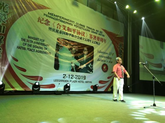 泰国合艾和平协议卅周年纪念晚会上,我激动地说:"我的父辈们在70年前,坚定地和你们站在同一战线上,为了抵抗帝国侵略,保卫世界和平而进行英勇的战斗!"