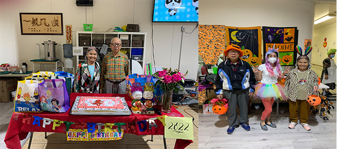 图十一 左:老人中心生日活动 老人中心"万圣节"活动