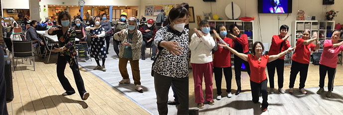 图十二左:老人中心太极操活动 右:老人中心舞蹈活动