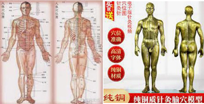 图七 左:中医发明人体穴位图 右:中医铸造人体穴位铜人