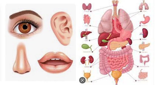 图八 左:眼鼻耳齿舌图 右:体内五脏六腑图