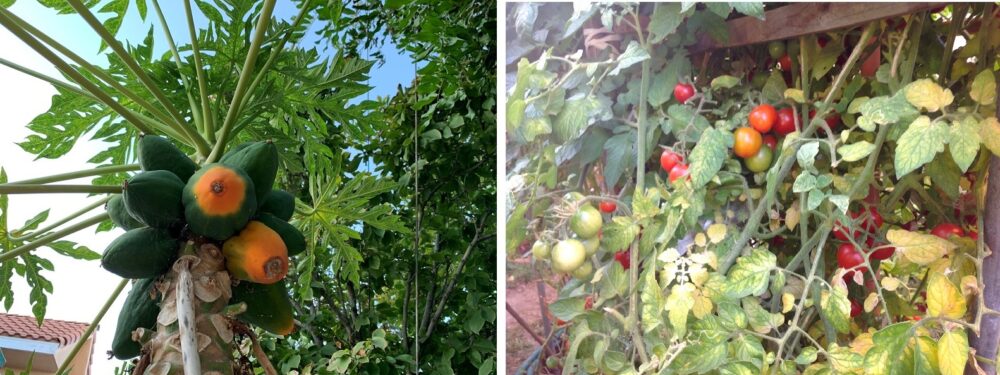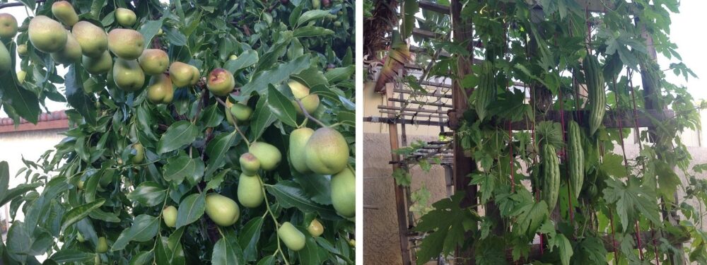 周淑琼是南友周淑屏的胞妹,我们在云南和香港期间,与周淑屏一家亲如兄妹,周淑琼家和我们家只有几分鐘车程,我经常去她家参观蔬果园,她家果园长宽只有六、七米,种植瓜果十分密集,她同时施用包装肥料和自制肥料,黑油油,松软软的土壤肥力特佳,种出来的瓜果果实累累,四棵芭蕉同时结果,齐齐丰收,挨屋种的几棵木瓜,果实成串,经常送给我吃,特别是她种的辣木树,一两年即高大参天,一条条绿色果实垂掛树枝,数不胜数。常常送给我吃。