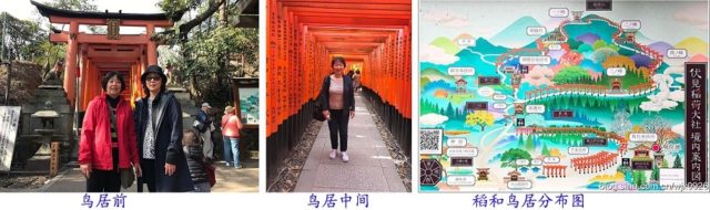 伏见稻荷大社以其特有的鸟居闻名,是祭祀农业和商业的神社,是京都的主要景点。此处最特别的是绵延山头数公里的橘红色的千本鸟居(一种有两根支柱和两个横梁的木建筑,上有各种题字),鸟居一直绵延到蹈和山顶,十分有看头。据说上到山顶需时约3小时,我们的参观时间有限,只是在山脚的鸟居拍照留念。