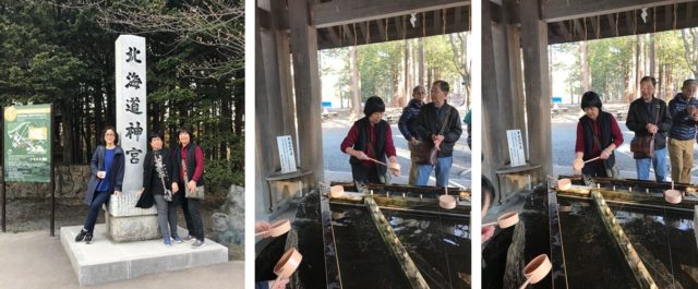 北海道神宫是札幌市的一座神社。和奈良的东大寺一样,进入前要洗手净口,在神社入口的左方有一个水舍,参拜者右手拿杓舀一瓢水先洗左手,左手拿杓舀水洗右手,然后右手舀一瓢水放在手心,将水送至口中漱漱以示净身才膜拜。