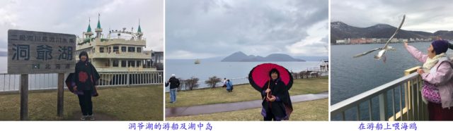 洞爷湖位北海道西南部,属火山口湖,湖中有岛,四面环山,有游览船在湖里周游,可欣赏美丽的湖光山色。湖周有许多海鸥,我们在船边用饼干或薯条招引海鸥飞来觅食,十分好玩。湖边有许多温泉旅店,还有高尔夫球场,可见洞爷湖是个度假胜地。我们下榻在湖边的“洞爷湖万世阁酒店”,酒店房间是日式格局,有个小客厅配以矮桌子及榻榻米,和地而坐。房间配有和服方便客人穿去温泉区,进温泉池时都必需是赤条条的。