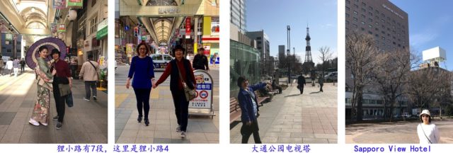 - 狸小路商店街是札幌市相当著名的商业集中地,各种药妆店,服装店,食品店,鞋店,超市,甚至小赌注店都应有尽有。狸小路商店街已有百年历史,分为7个街区,长一公里,据说和我们所住旅馆旁的大通公园一样长,离我们所住的 Sapporo View Hotel 只隔几个街口。大通公园有个电视塔,白天看似一个铁架,晚上亮起灯光才有个模样。我们在狸小路买了本地驰名的特产“白色恋人”巧克力饼,只有北海道出售,本州那边都没有。
