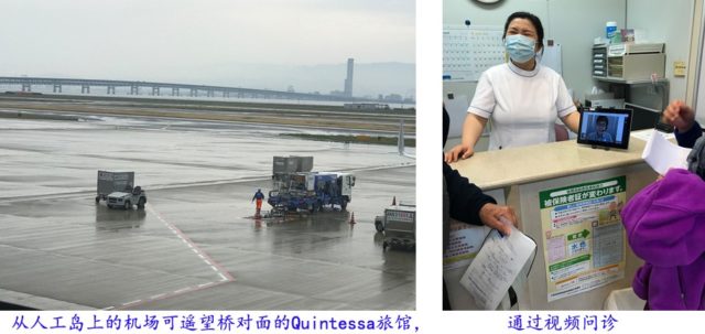 在等待转机时,我们有位团友突然不适,肚疼发冷且不断冒汗,当即用轮椅推至机场的诊所。在日本许多人都不谙英语,我们又不会日文,此时又没导游陪同,幸亏诊所护士在iPad 上联系到一位讲中文的医生,可通过视频问诊,科技帮忙我们解决了问题,医生开了药方,付了4400日元的医生费和药费,买了个心安,继续我们下一段的旅程。有惊无险!