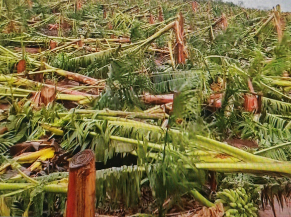 9月6日在中国海南文昌市登录的17级台风“摩羯”,给香蕉果农造成巨大的经济损失。然而,确有一些果农吸取2004“达维”,2014“亚马孙”的沉重教训,面临天灾,宁可“小题大做”,不可“心存侥幸”;宁可“十防九空”,不可“失防万一”,积极防护,及时砍去香蕉叶,插上竹竿加固,顶住了狂风暴雨,保住了香蕉,取得了完胜。