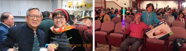 12-31-2018当晚,天气晴朗,寒风飕飕,会友和朋友们身着亮丽的冬装,粉墨梳𥺁打扮,三三两两,拥入礼堂,个个眉开眼笑,互相招唤,好不亲热,场面温馨动人。