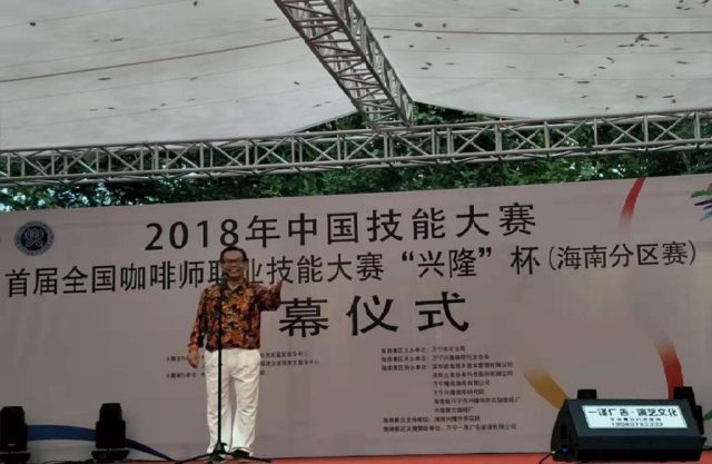 我应“2018年中国技能大赛——首届全国咖啡师职业技能大赛‘兴隆’杯海南分区赛”组委会,即海南省万宁市“兴隆热带花园”郑文泰董事长的热情邀请,于10日上午参加了隆重的大赛开幕式。