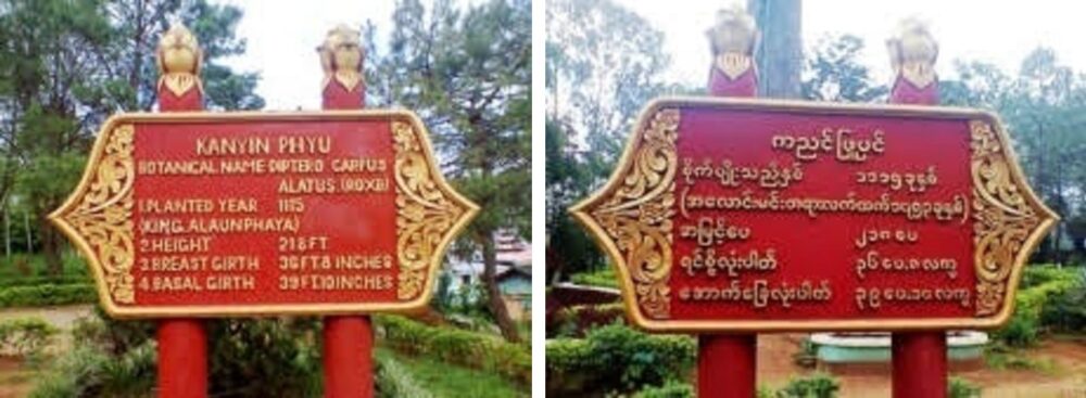 景栋“拐仗山”上的神树介绍牌(英、缅两种文字)