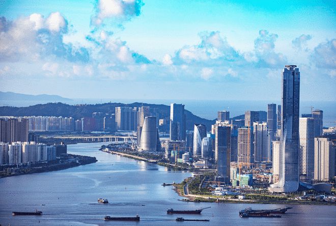 橫琴深合區秋日雨後放晴,大灣區氣候暖和,秋高氣爽,香洲埠呈現出一派秋之美景。高樓大廈美輪美奐,整齊有序密密地排列著,參差錯落的別墅瓊居如仙境般美艷。柳條在秋風的吹送下,輕柔地拂過屋檐。傳统的四合院築有碧綠的欄杆,楹柱彩繪雕鏤,极盡奢華。門前有縱橫交错的寬街窄巷,晉、川、徽、海等派繋的建築風格各顯特色,爭妍鬥麗,各領風騷。