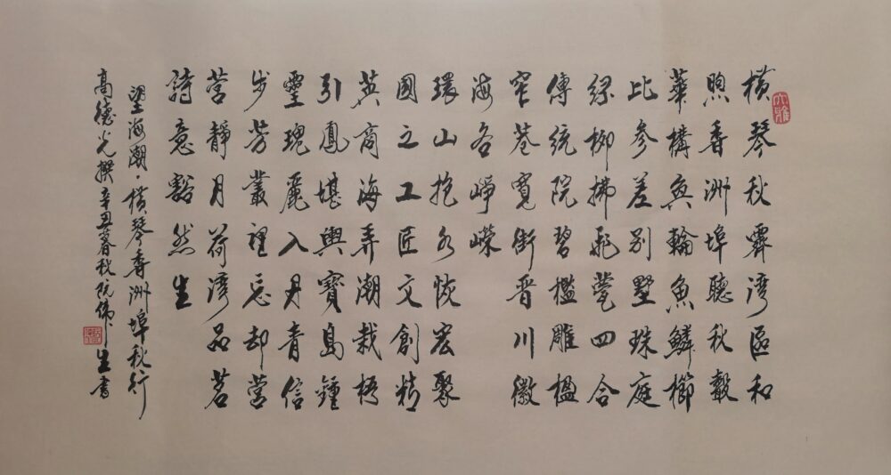 香洲埠四周環山,綠水環流,顯得那麼大氣派。埠裡聚集了很多大國工匠,文創大師,工商巨賈,玉石珍藏等。香洲埠遍植梧桐,招來彩鳳棲息,商旅百業,競逐商機,築夢展鴻圖。琴島聚天地之靈氣,宜居宜業,風水寶地啊!滿眼秀麗風光,人如遊走在画圖中。漫步在潔淨無塵的芳叢花徑上,尋幽探勝,歌之舞之,滿心愉悅,忘却了为生活而打拚的勞碌奔波之煩惱。圍坐在静月荷灣食府裡,品味著甘香繞頰的名茶,暢談秋月春風,探討商機文化,是何等的寫意。詩意在不知不覺中悠然而生。