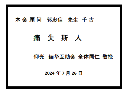 转载请注明:《本会顾问 郭忠信先生千古 — 仰光缅华互助会 全体同仁 敬挽》 复制链接