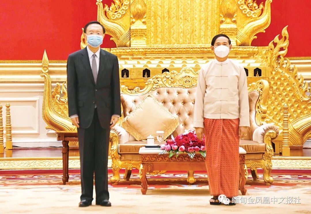 缅方领导人感谢中方对缅甸和平与发展的宝贵支持和帮助,赞赏中方为缅和解进程发挥建设性作用。缅中携手抗疫,谱写了胞波友谊新篇章。缅中关系真正建立在相互理解与尊重基础上。缅方愿同中方一道,尽早克服疫情影响,深化高层交往,全面推进缅中经济走廊建设,扩大人文等领域交流,加强在国际舞台上的沟通协调,构建缅中命运共同体。双方要密切东盟-中国和澜湄框架下合作,共同促进地区人民福祉。缅方高度评价中国抗疫成效和建设成就。缅方一贯恪守一个中国原则,坚定支持中方维护国家主权、安全、发展利益。