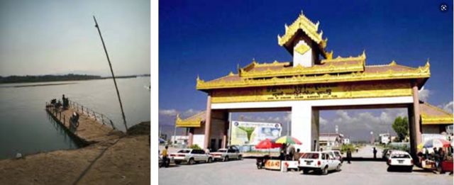 左:缅甸南坎到中国弄岛瑞丽江渡口,右:木姐边界口岸