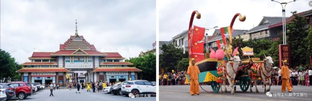 左:瑞丽边界口岸,右:瑞丽中缅胞波节花车游行盛况