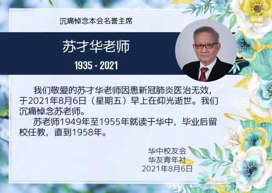 转载请注明:《沉痛悼念本会名誉主席 苏才华老师(1935–2021)》 复制链接