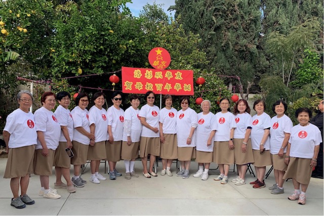 洛杉矶华友决定,尽快举办祝贺母校百年华诞活动,场面越隆重越好,时间又非常紧迫,这就忙坏了洛杉矶的华友干事们,尤其是总设计师朱雪雪,统筹兼顾,自己又制作精美的现场牌匾,朱雪璋赶缝女生卡机色裙子,陈彩意赶贴白背心上的校徽,朱徐佳编排当日的表演节目,其他校友们也按会场需求运送座椅板橙,不亦乐乎。