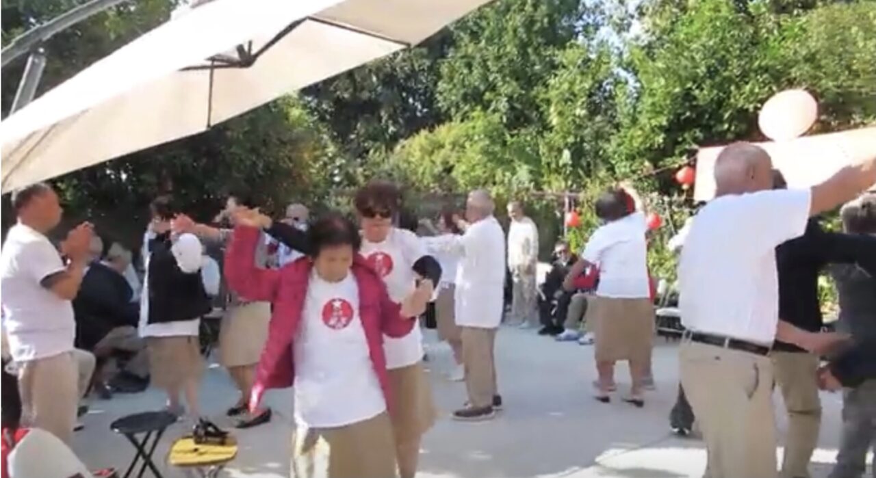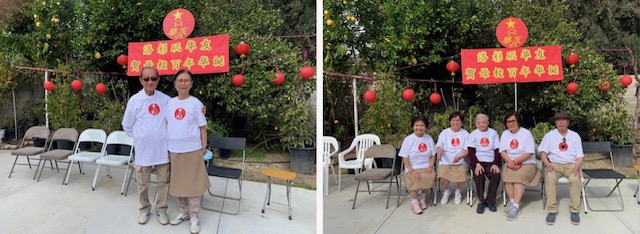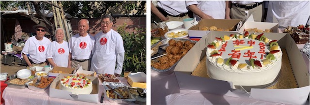 2-11-2023星期六,是洛杉矶华友庆贺华中母校百年华诞活动日,当日上午,天空厚云密布,不见阳光,令人担忧,可是到了中午12时,突然天空风吹云散,蓝天阳光,温暖了大地,给庆祝会带来非常美好的气候良景,只见活动地点张少战主席后院,美丽的果树背景前,鲜艳夺目的牌匾高高掛起,主席夫人谢金兰校友已煮好正宗的缅甸风味鱼汤米线,香味扑鼻,令人垂涎。校友们身着校服,喜气洋洋,三三两两,接踵而至。各自携带丰富多彩的自制食品饮料。其中学长黄光耀带来特定的榴莲口味大蛋糕,上面有1921-2021华中百年红色字样,特别抢眼,引起大家围观,个个开口叫好。