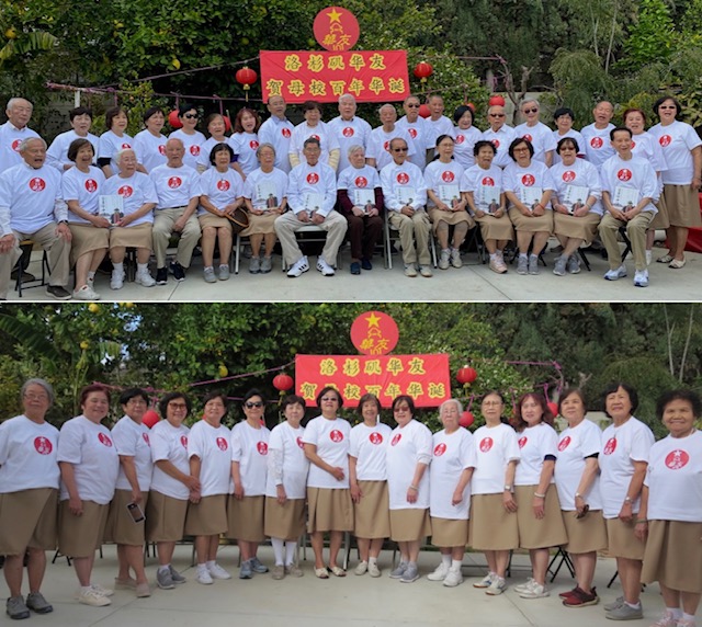 2023年2月11日下午,张会长家的后院树木青葱,花果满园,蓝天白云,空气清爽。在《洛杉矶华友贺母校百年华诞》的牌匾下,数十个亮眼的华中红色校徽在缓缓挪动,那是一群穿起校服的老学生,他们快乐地游荡在“华中”小校园里,热情地互相问候,忙着拍照,尽情地高唱校歌,欢快地跳起怀旧集体舞…….,没有乐队,没有麦克风,靠着大家的喉咙和肢体的活动,却显得有声有色生气勃勃,这是缘自大家对母校的热爱,发自内心的自然感情。