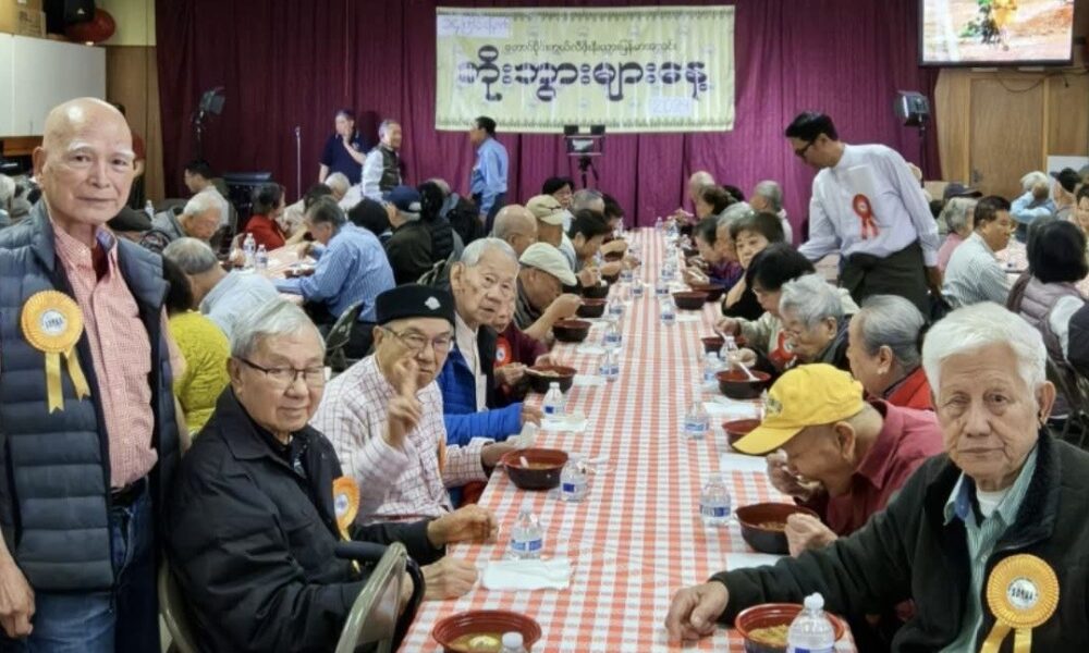 2024-4-21日洛杉矶缅甸会假借缅华会会所隆重举行泼水节敬老活动,当日上午万里无云,微风轻拂,前来参加敬老活动的寿星们,有的健步自行,有的拄着拐杖坐着轮椅,有的儿孙掺扶,高高兴兴,步入礼堂,一排排桌椅整齐排列,全部给75岁以上寿星们坐满,可谓座无虚席。