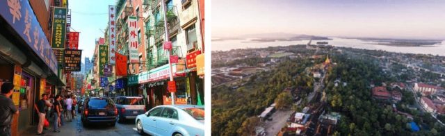 左:首都仰光广东大街,右:专区首府毛淡棉风光