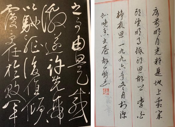 左:成都武侯祠岳飞手迹,右:胡一帆硬笔书法