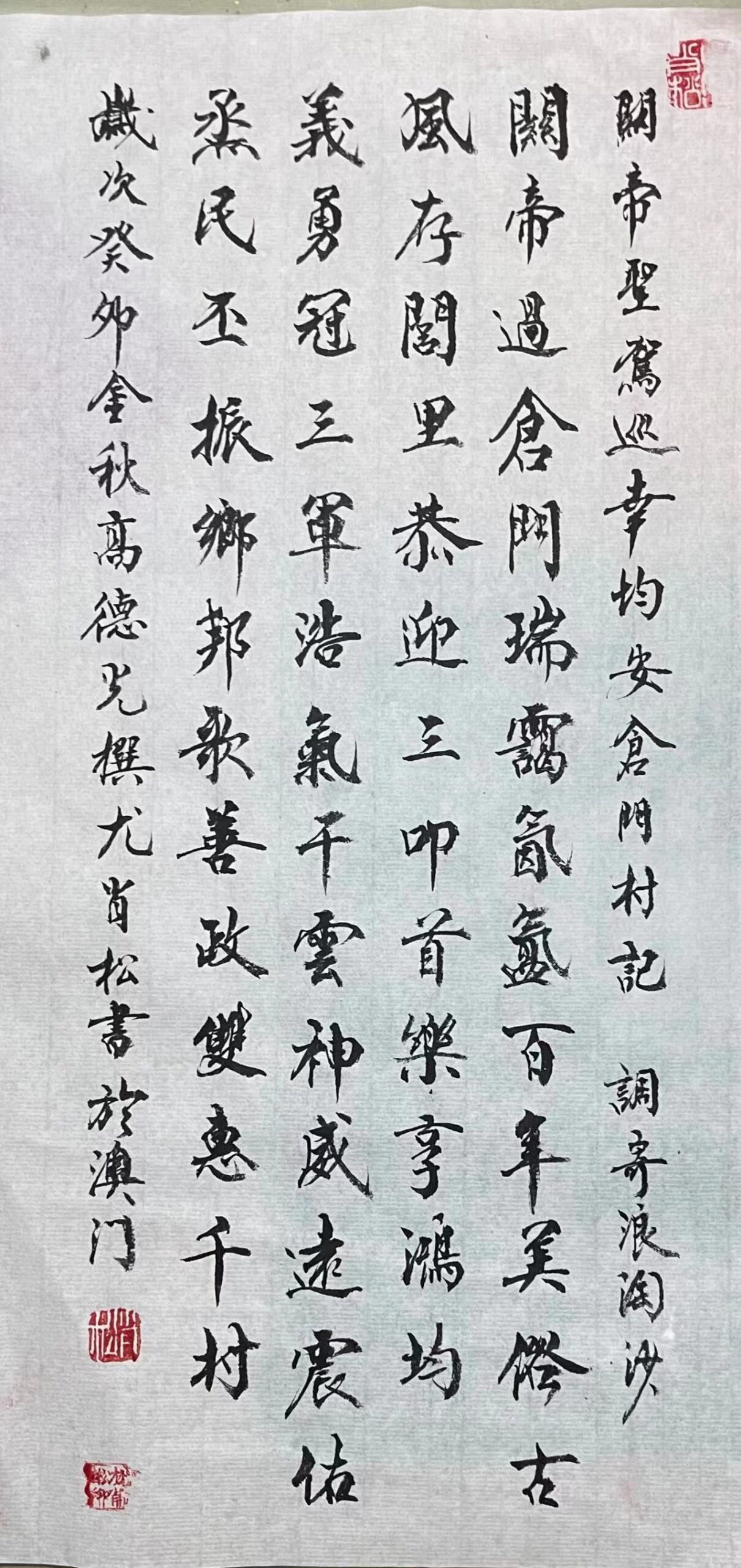 . . 華夏文明今古傳, 楚辭漢賦宋唐篇。 濠江薈萃吟風雅, 葡韻悠揚入管絃。 融滙中西相碰撞, 切磋音律共承宣。 好將世界詩歌節, 砥礪騷壇笑比肩。 书法 一〉馮利發 二〉劉北照 三〉茂松 四〉黎勝培 五〉周永騰 六〉吳錦蓮...