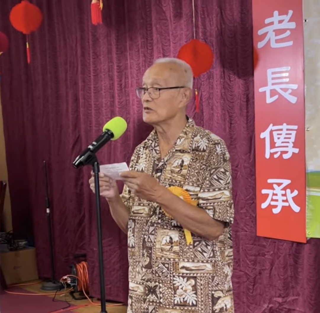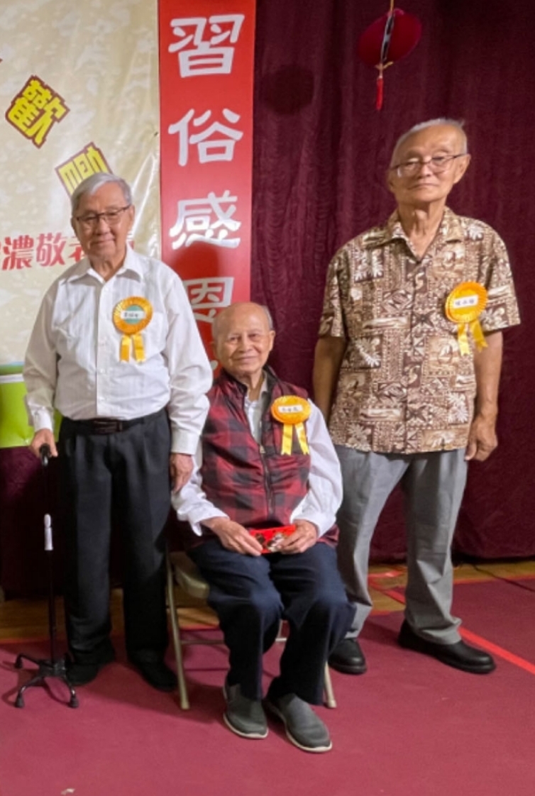 粟福祥老師发紅包給年齡最高的男壽星蘇春美先生