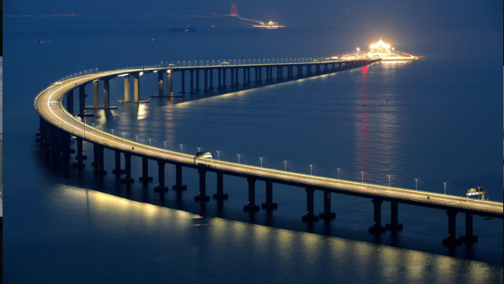 这就是世界上最長的跨海港珠澳大桥。它是21世纪以來,中国自已建造的东海大桥,杭州湾跨海大桥,舟山连島工程,胶州湾大桥,厦漳跨海大桥之后,又一伟大工程。