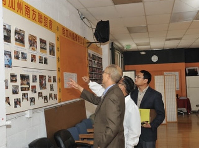 2015年,郭忠信先生參观本会会所。左起:郭忠信,许秉正,郭先先秘书趙清华
