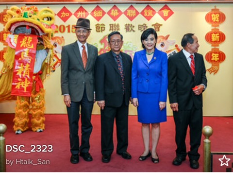 2015年春節,郭忠信先生(前排左六)和缅甸驻洛杉矶总领事吳旺觉所(前排左七)和我会全体幹事合影