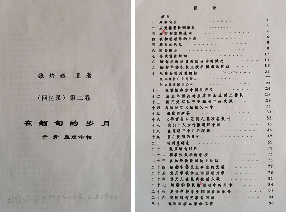 父亲的第二件遗产是他退休后花几年心血写下的约20万字的兩卷回忆录原稿。第一卷详细记叙他在国內从事革命活动的经历,第二卷详细记叙他在缅甸从事缅华爱国民主进步事业的经历,是不可多得的第一手史料。近年来我整理、打印父亲的回忆录,使我更深刻了解父亲一辈子为国为侨的奋斗精神,了解父亲的为人和品质,值得我敬佩、学习和继承;通过回忆录,使我更多地了解缅华社会在抗日烽火中的历史。不少缅华老前輩,催促我尽快出版這回忆录。所以,回忆录是父亲留给我的珍贵遗产。我大哥曾风趣地对我说,“你就幸运了,有父亲留下的兩分遗产,我卻什么都沒得到。”