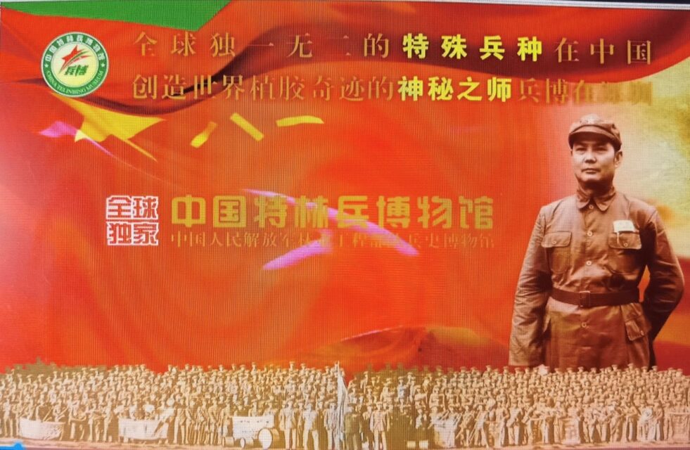 歌声把我带进了神秘部队——特林兵的博物馆。它详实地记载着1950年代,国际反华势力企图将新生的中华人民共和国扼杀于摇篮之中。为了冲破国际反华势力对我国的战略物资——橡胶的封锁,中国政府与原苏联政府紧密联手,在我国广东(海南、湛江)、广西、云南秘密开展800万亩的橡胶垦殖和加工工程。为保密起见,称为XX特殊林业工程,从二、三、四野战军抽调两个师,加上广西一个独立团,湖南志愿民工团、华侨农场等单位组成的垦殖大军,称为特林兵。