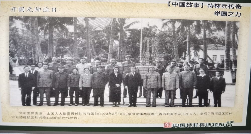 受毛主席委派,全国人大副委员长徐向前元帅于1973年2月陪同柬埔寨国家元首西哈努克亲王及夫人,参观海南垦殖区南林农场和兴隆华侨农场