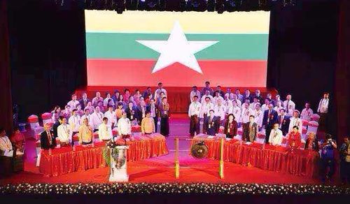 壮严的开幕仪式准时开始,与以往官员剪彩飞球不同,在巨大白星黄青红条纹缅甸国旗背景前,由曼德勒专区首长击响三声大金锣,全场起立,播放高唱缅甸国歌,我虽然离开缅甸几十年,还不忘歌词:"地球不毁,缅甸长存,这是我们的国家,我们的领土,我们擁有的神圣领土,我们要誓死保卫联邦共和国,我们一定要齐心肩负共和国的利益,捍卫无价领土,责无旁贷"。