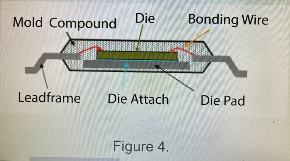 半導體橫切面,通道外部的腳架(lead frame)上,做錫銀銅的電鍍,再放到電子組裝板上電銲上去