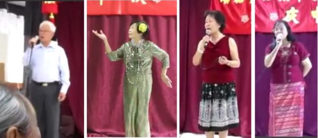 今午十一时半礼堂已是摩肩擦踵,座无虚席。除本州各兄弟团社代表,本校校友外,尚有遠道而来的以苏金安老师为首的北加州稀客。约二百多位贵宾莅临,参与其盛。其中有当年该校老师,郭缅生老师,黃景象老师,黃英福老师,陈君帼老师,曹水芬老师,苏金安老师,简瑞贞老师,楊玲敏老师。叶英华女士可能是该校资格最老的校友,据说她就读时中国女中校址是在仰光十六条短街一排木砖楼,那该是二战后仰光复员,华校复办初期。迁址五十尺路(貌概路)那已是后期的事了。 此次活动分为<敬师>和<联欢>两大单元。活动仪式开始,司仪江丽春有这么一段充滿诗意的开场白;「尊师重道是我们中华民族优秀的文化传统之一,藉此中秋,校友欢度传统隹节,不敢或忘师恩,特拜邀恩师们同欢,以尽学子感恩之情。感恩教导我们所付出的辛劳。