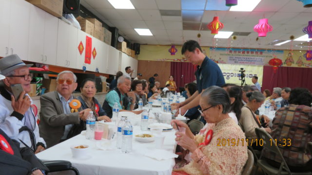 长米粉,长寿面,暖寿甜品,凉拌茶叶苦后甘,端着一盘盘敬老福食,品香四溢的年青志愿服务员,脸带笑容必躬必敬地一盘盘一碟碟摆在爷爷们的面前,一百余位红颜皓发如了因般的老人,那笑容那尊崇的表现,比起丰盛的食品更为享受。他们是祖先美德优良传统的承继者,弘扬者,他们是我族的希望,了因们看到海外族群的无限光辉的明天。